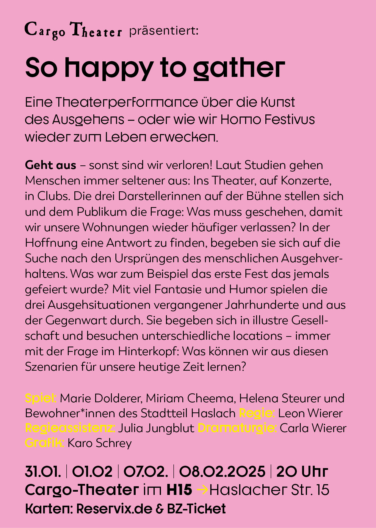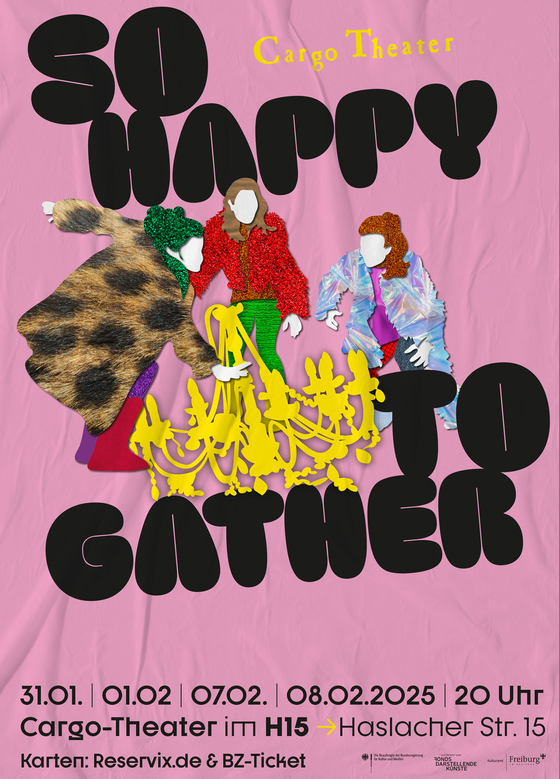 Für das Cargo Theater Freiburg habe ich ein Plakat zum Stück »So happy to gather« gestalten dürfen. Gibt es schönere Aufträge? Glaube nicht.
